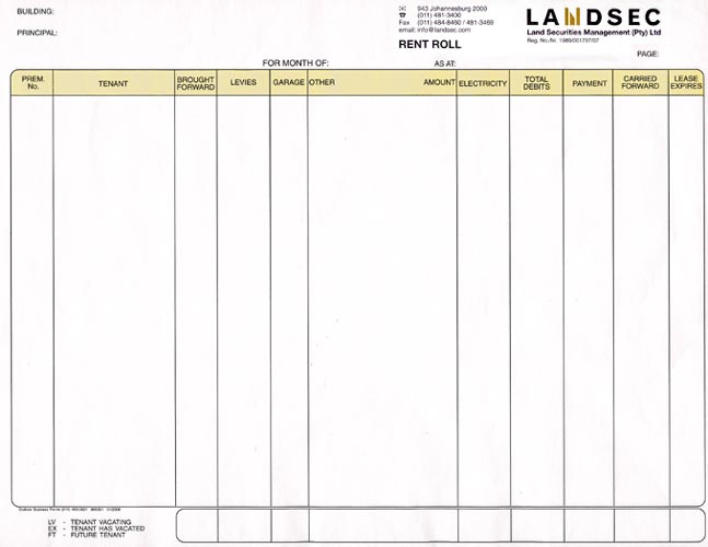 Monthly presentation to the owners of a disbursement statement, a rent roll. Financial statements and budget comparison report quarterly by arrangement.